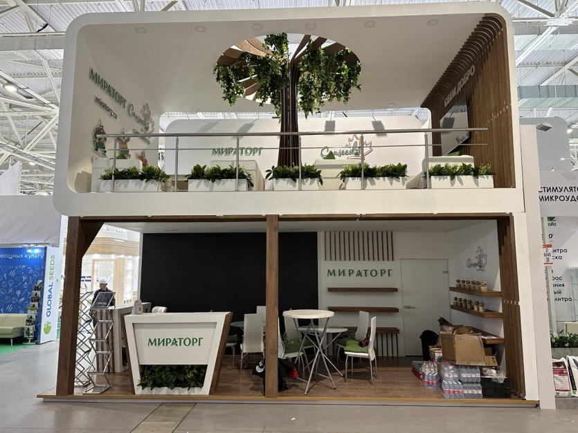 Компания Мираторг была представлена на выставке ЮГАГРО2024 двухэтажным выставочным стендом, спроектированным компанией «Выставка на носу».